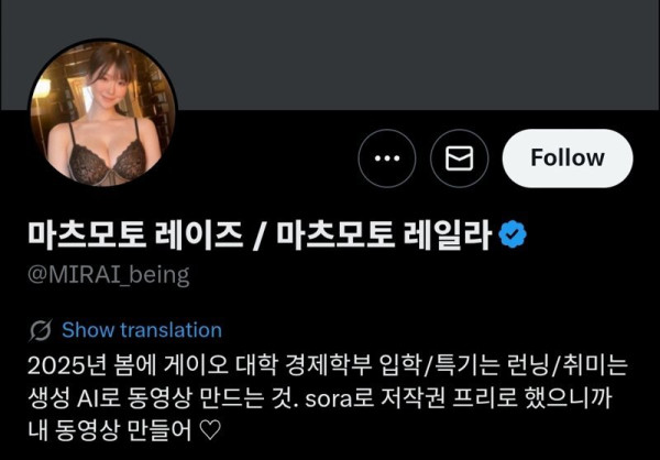 AI 짤 만들 때 본인 쓰라는 일본 여대생