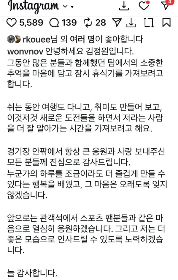 오피셜) KT 김정원 치어리더 은퇴하네요