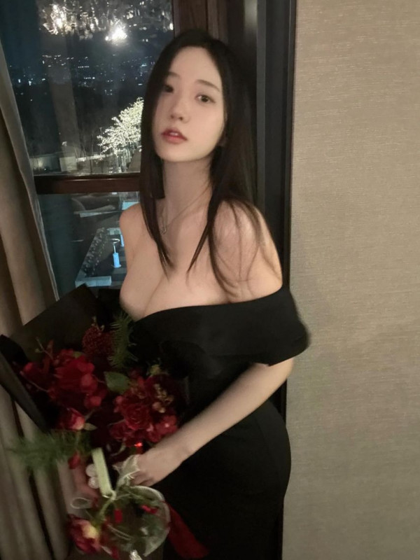 많이 내려간 블랙 오프솔더 드레스 가슴골