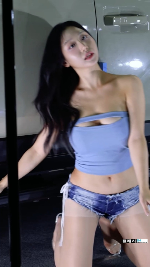 아슬아슬한 모델 채솔 모터쇼 청팬츠