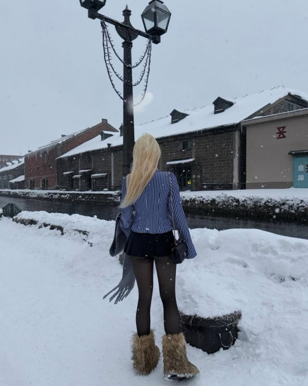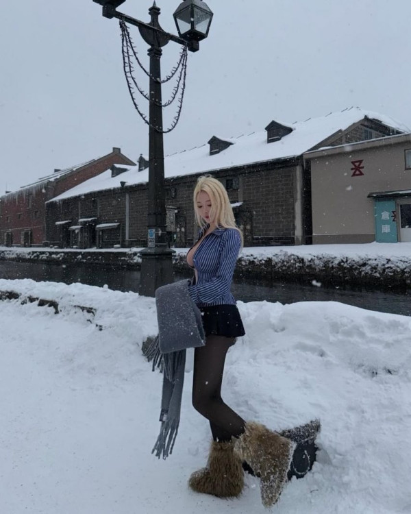 눈밭에서 노브라 가슴 노출