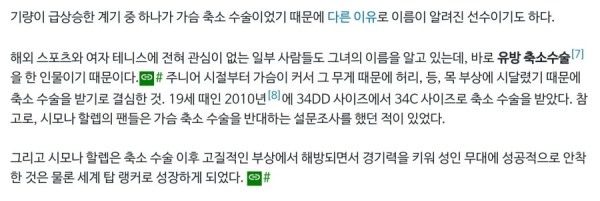 가슴 축소 수술 후 전성기를 맞이한 테니스 선수