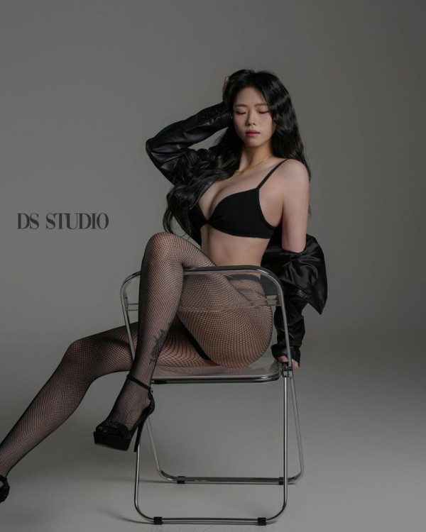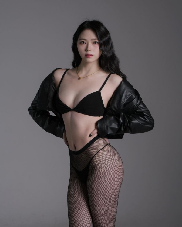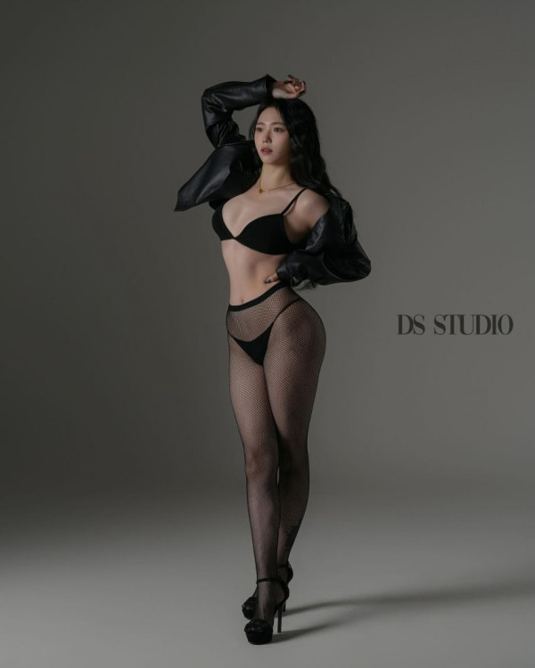 블랙 브라 팬티 망사 스타킹 바디프로필