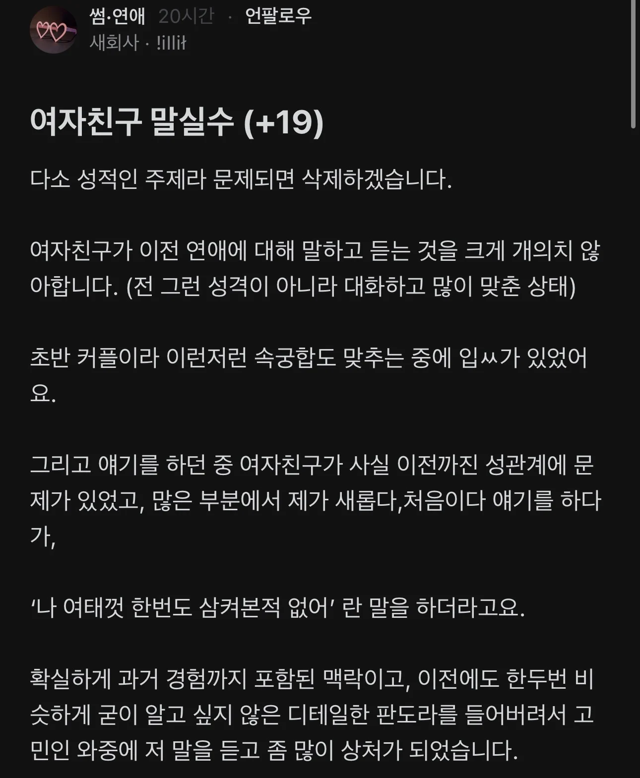 19) 성관계 중 여자친구 말실수