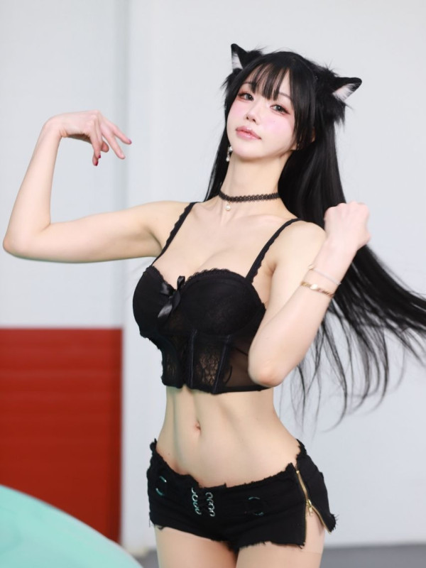 올블랙 레이스 란제리 위에서 내려본 가슴골
