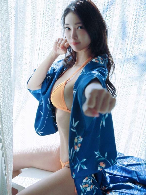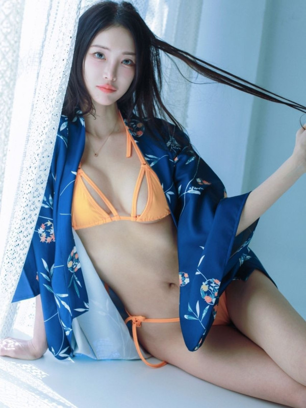주빈 주황 형광 비키니 핫바디