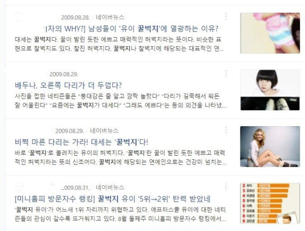2009년쯤 당시 가수 애프터스쿨 유이 필두로 꿀벅지라는 단어가 유행했음.