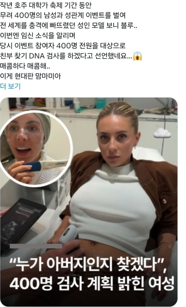 남자 400명과 노콘 섹스후 임신한 포르노 배우 근황