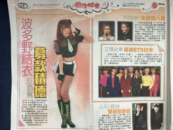 예전 대만 모 연예신문에서 BTS와 나란히 실린 하타노 유이입니다.