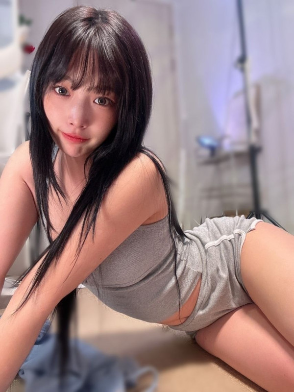 숙여주는 회색 나시 가슴골 돌핀팬츠