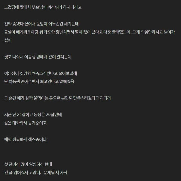 중학생 때 여동생과 ㅅㅅ중독자 된 썰