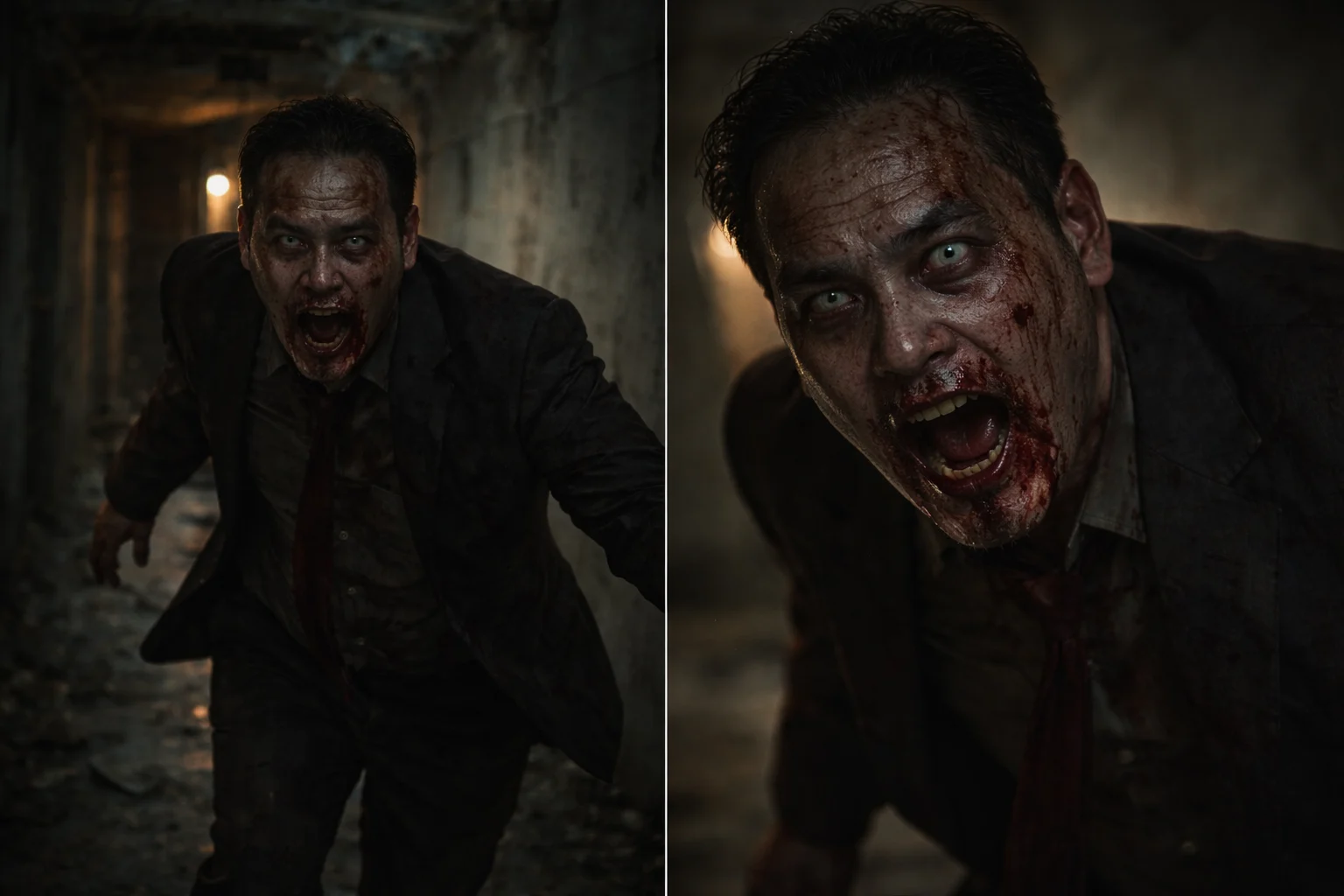 좀비로 변한 부하들과 맞서 싸우고