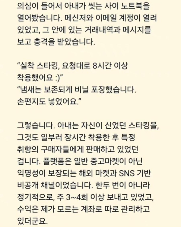 아내가 저몰래 신던 스타킹을 팔고 있었습니다